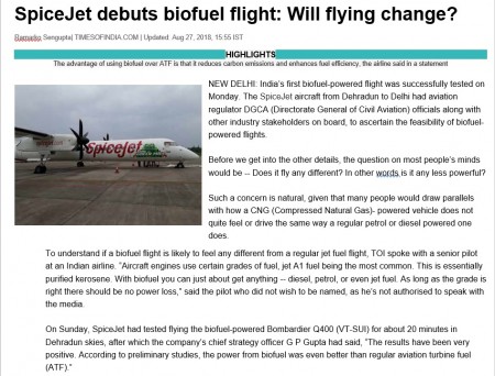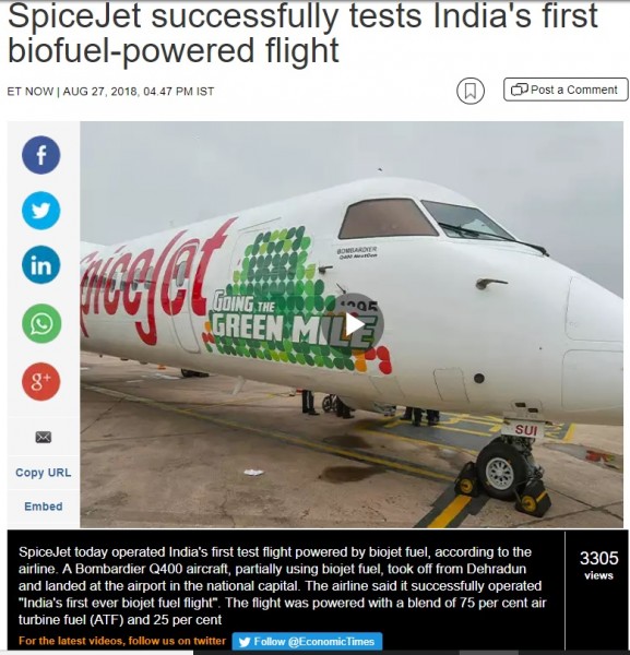 SPICEJET DEBUTS BIOFUEL FLIGHT
