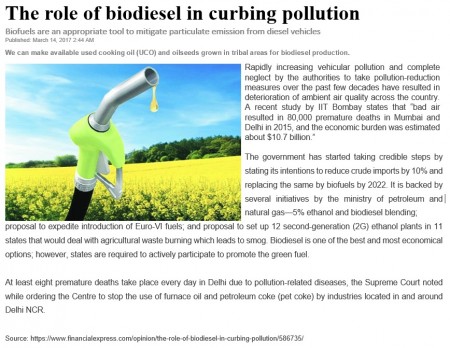 THE ROLE OF BIODIESEL IN CURBING POLLUTION