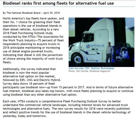 BIODIESEL RANKS FIRST AMONG FLEETS FOR ALTERNAIVE FUEL USE
