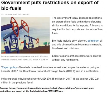 GOVERNMENT PUTS RESTRICTIONS ON EXPORT OF BIO-FUELS