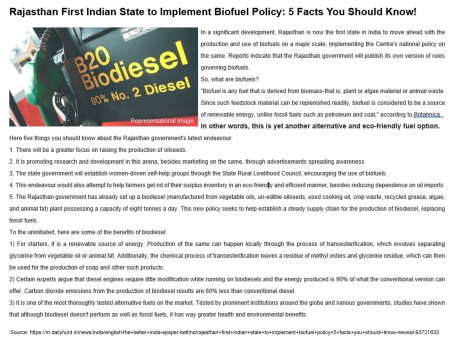 RAJASTHAN FIRST INDIAN STATE TO INPLEMENT BIOFUEL POLICY