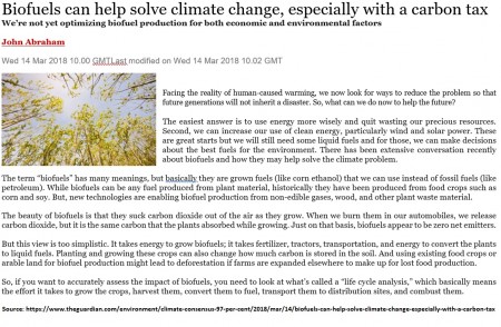 BIOFUELS CAN HELP SOLVE CLIMATE CHANGE, ESPECIALLY WITH A CARBON TAX