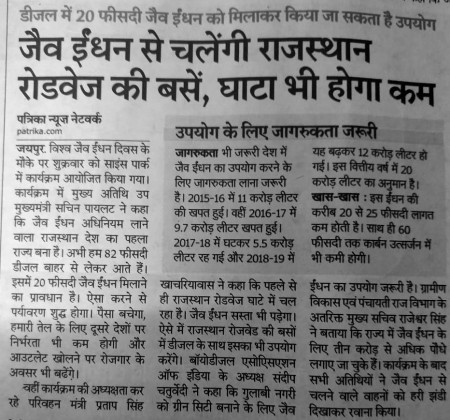 RAJASTHAN ROADWAYS TO RUN ON BIODIESEL